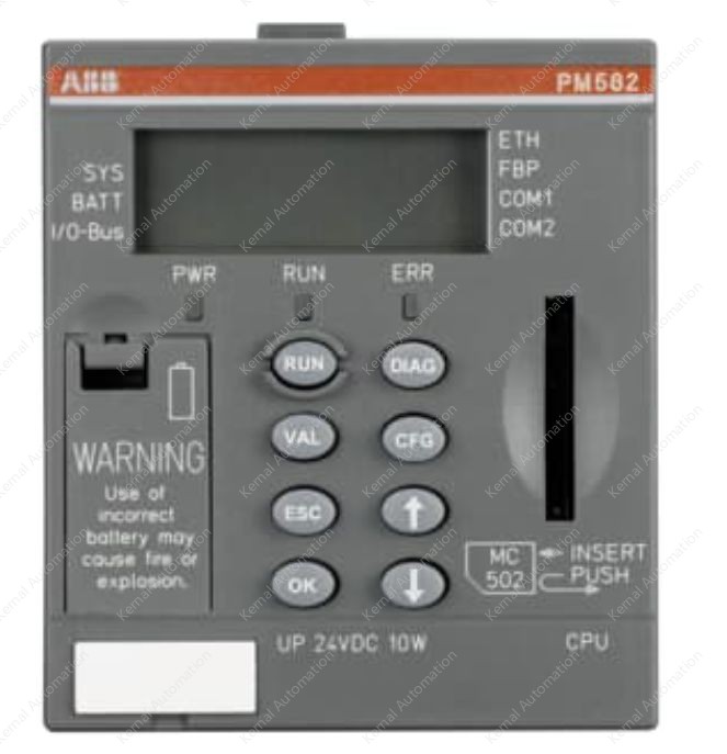 PM582-ETH:AC500,Prog.Log.Controller 512kB 24VDC,ETHERNET,2xRS232/485,FBP SD-Card Slot,LCD DisplayDisplay Type:LCDCommunication Interface:Serial/FBP/EthernetMemory Size User Data:416 kBMemory Size User Program:512 kBMemory Type User Data:Flash EPROMDegree of Protection:IP20Supply Voltage:24 V DCAmbient Air Temperature: Operation 0 ... +60 °C Storage -40 ... +70 °C